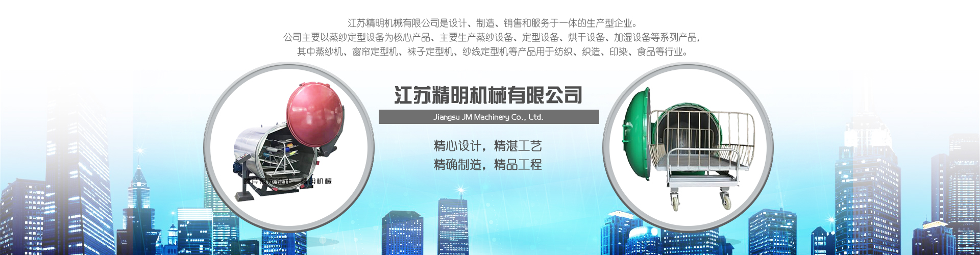 江蘇精明機械有限公司是設(shè)計、制造、銷售和服務(wù)于一體的型企業(yè)。公司主要以蒸紗定型設(shè)備為核心產(chǎn)品、主要蒸紗設(shè)備、定型設(shè)備、烘干設(shè)備、加濕設(shè)備等系列產(chǎn)品,其中蒸紗機、窗簾定型機、襪子定型機、紗線定型機等產(chǎn)品用于紡織、織造、印染、食品等行業(yè)。主要經(jīng)營包括:1、蒸紗設(shè)備:蒸紗機、蒸紗箱、蒸紗缸、蒸紗鍋、蒸紗小樣機等2、定型設(shè)備:窗簾定型機、襪子定型機、圍巾定型機、手套定型機、紗線定型機、低彈絲定型機、丙綸絲定型機等3、烘干設(shè)備:布料烘干機、拉幅烘干機、染整烘干機等4、加濕設(shè)備:棉紗加濕機、氣流紡?fù)布喖訚?..